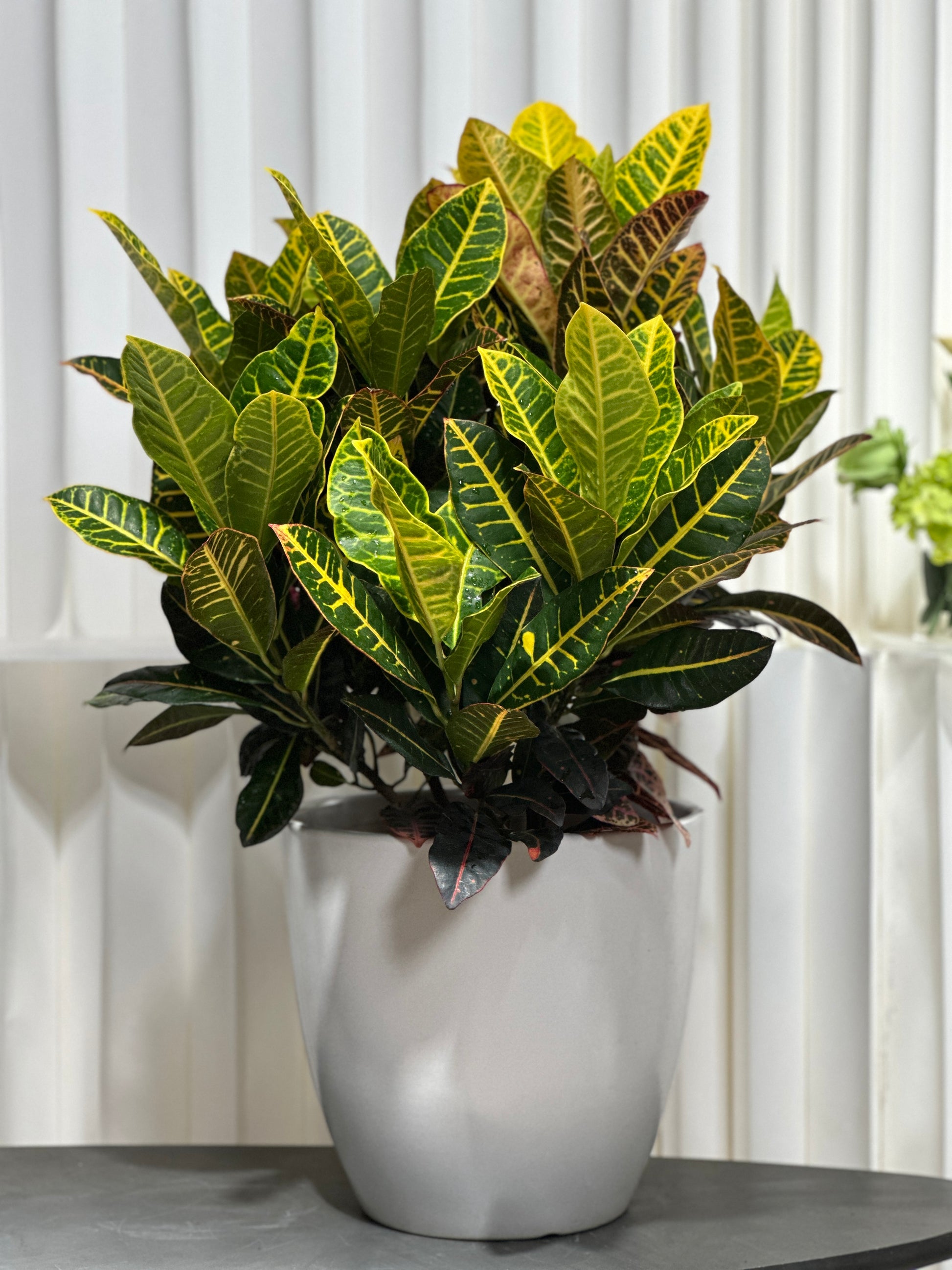 變葉木|Garden Croton是一種熱帶觀葉植物,以其鮮豔多彩的葉片而著稱。其葉片形狀多變,顏色從綠色、黃色、橙色、紅色到紫色不等,往往呈現出斑駁的色彩,非常適合作為家居或園藝裝飾植物。