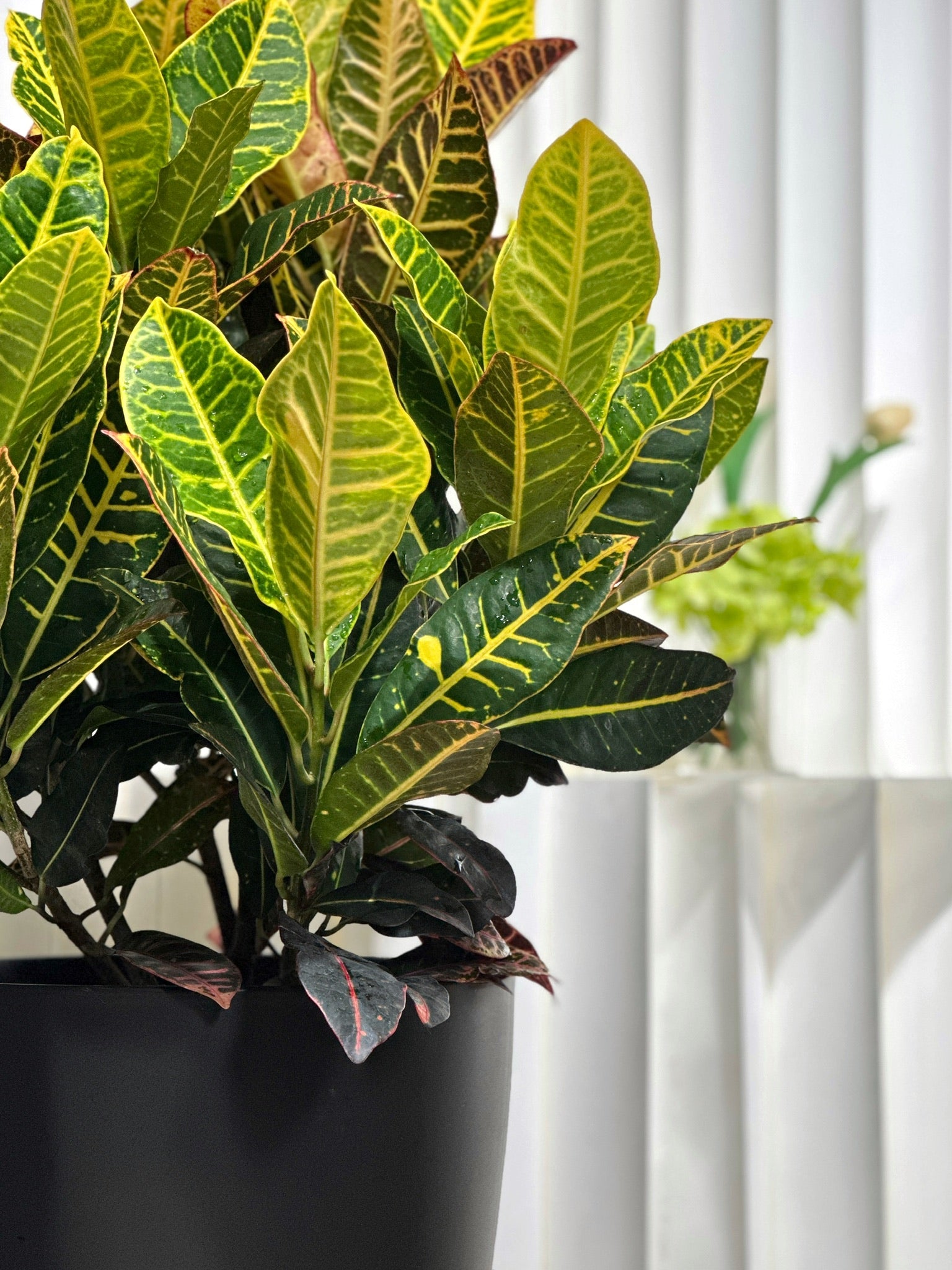 • 最佳光照:變葉木是典型的喜光植物,喜歡充足的陽光。放置在明亮的間接光處,能讓葉片顏色更加鮮豔。