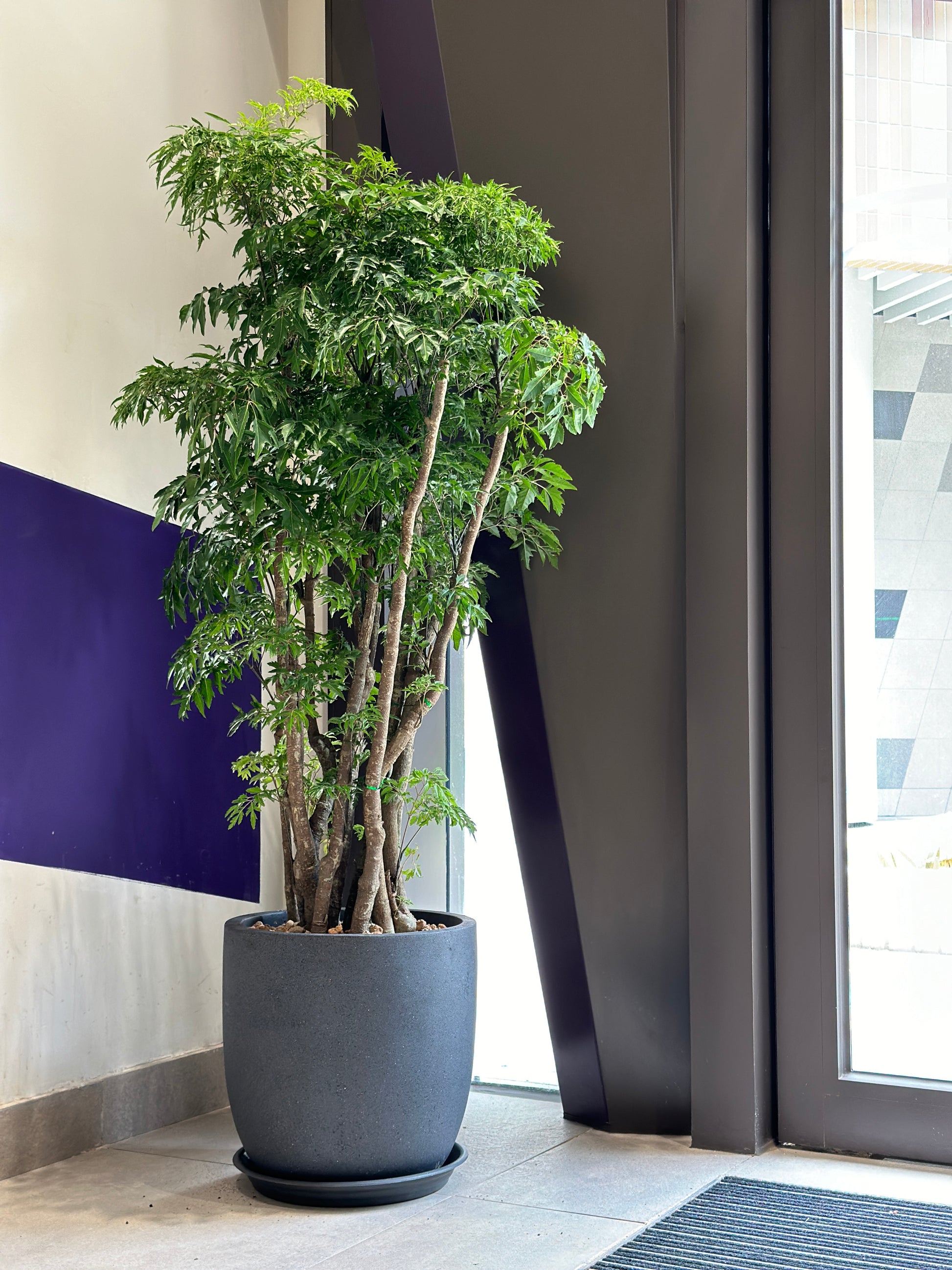 日本參樹(學名: Ming aralia / Polyscias fruticosa)。它原產於太平洋島嶼地區,是一種常綠喬木,樹冠寬闊,可以長到2-3米高。Ming Tree的葉子呈羽狀複葉,深綠色,有著細小的鋸齒狀邊緣,非常美麗。它需要充足的光線,但需要避免直射陽光,適合放在室內明亮的位置。日本參樹是一種非常適合室內種植的觀賞植物,可以放在客廳、辦公室等地方觀賞,並且它可以幫助淨化空氣,是一種非常受歡迎的室內植物。
